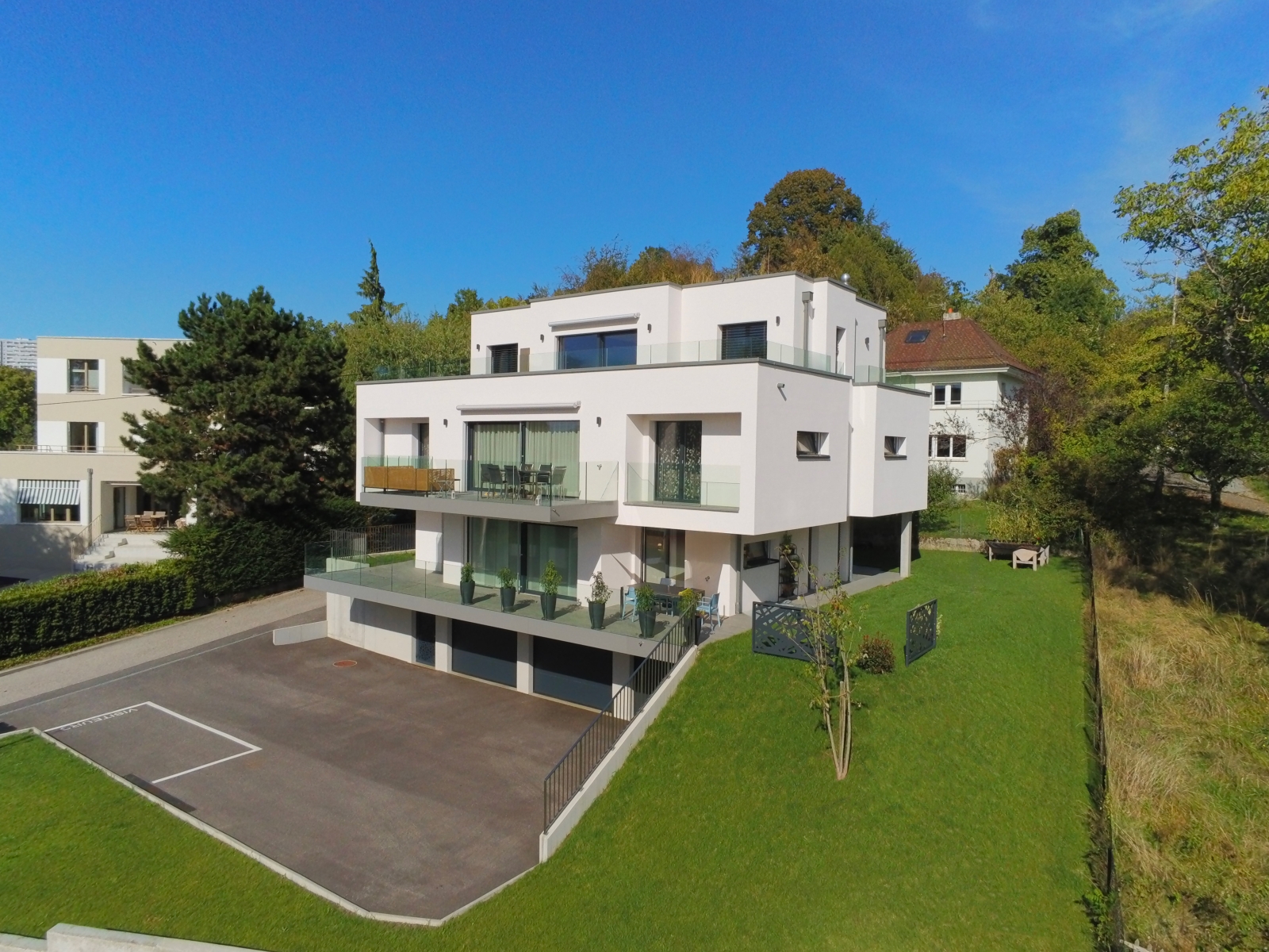 + Lire la suiteLe défi de l'architecte, par la volonté du Maître de l'ouvrage, était de réaliser ces logements en tenant compte des critères imposés aux attiques selon le règlement en vigueur de la Ville de Lausanne, ce qui a dicté le calcul et la surface de chaque logement, à chaque niveau. Le niveau de l'attique permet, de ce fait, d'exploiter au mieux le potentiel de la surface habitable et donne à l'édifice une proportion adaptée à l'échelle du quartier, bénéficiant d'une terrasse aux proportions généreuses et offrant, comme le niveau du milieu, une magnifique vue sur le lac, les Alpes et les environs, tandis que le niveau du rez-de-chaussée profite lui de dégagements dignes d'intérêt dans un contexte de verdure.