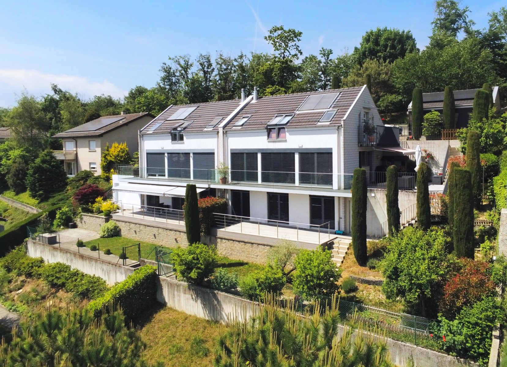 L'étage inférieur est constitué de 3 chambres d’enfants et d'une salle d'eau qui bénéficient de prolongements extérieurs et d’une vue magnifique grâce aux larges baies vitrées.