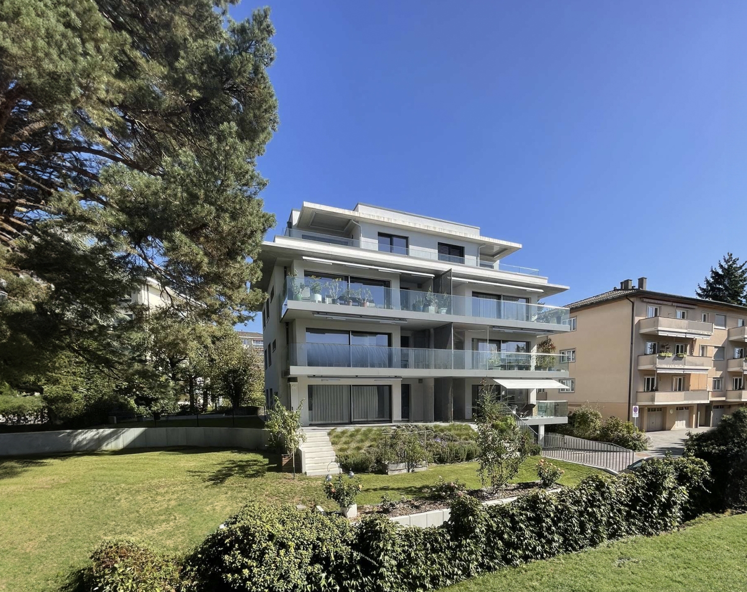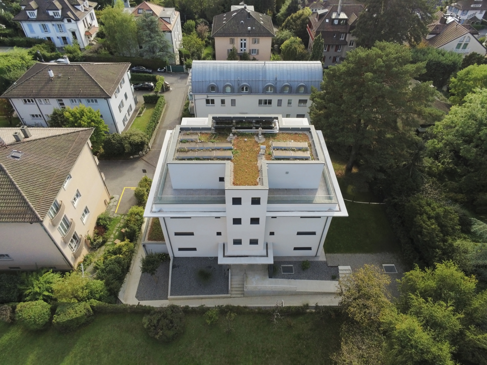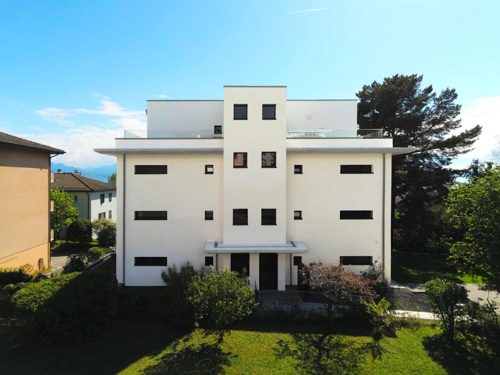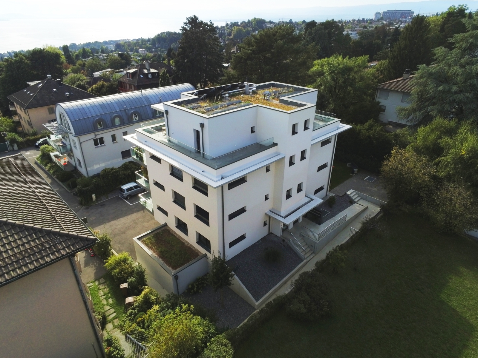 + Lire la suiteLa typologie des logements est symétrique, avec un effet miroir, hormis au niveau de l'attique, ce qui permet de faire jouer la lumière tant à l'intérieur du séjour que sur les terrasses et balcons orientés vers le Sud. L'appartement de l'attique, de surface plus réduite que les autres appartements, bénéficie d'une terrasse sur tout son pourtour ainsi d'une magnifique vue sur le lac.