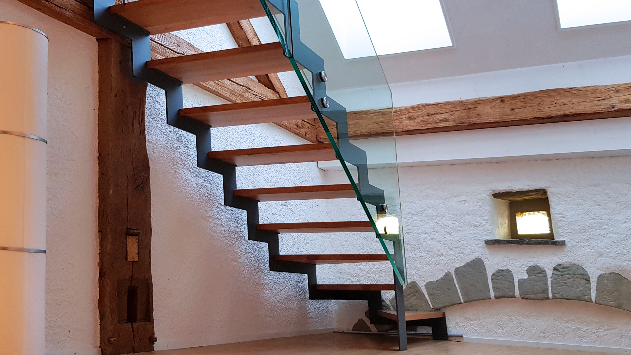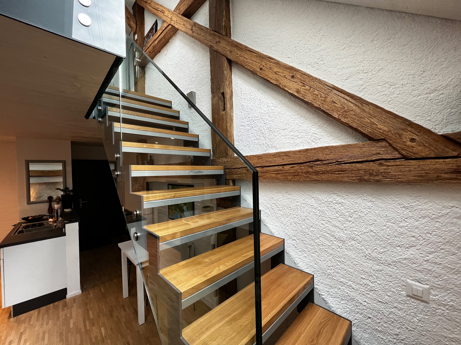 Ainsi, des surfaces polyvalentes ont été créées, donnant au total trois logements dissemblables et complètement atypiques. Ces logements allient le charme de l'ancien au confort et à la technique moderne, allant d'un appartement en duplex de 1,5 pièce avec mezzanine à un triplex de 4,5 pièces et un grand appartement de 6,5 pièces agrémenté d'un petit jardin. Les deux derniers, orientés au sud, étant pourvus d’un panorama grandiose sur le lac et les montagnes. À l'exception de quelques ouvertures obligatoires en toiture pour la salubrité des logements, aucun autre élément de l'enveloppe ne laisse transparaître la métamorphose du bâtiment.