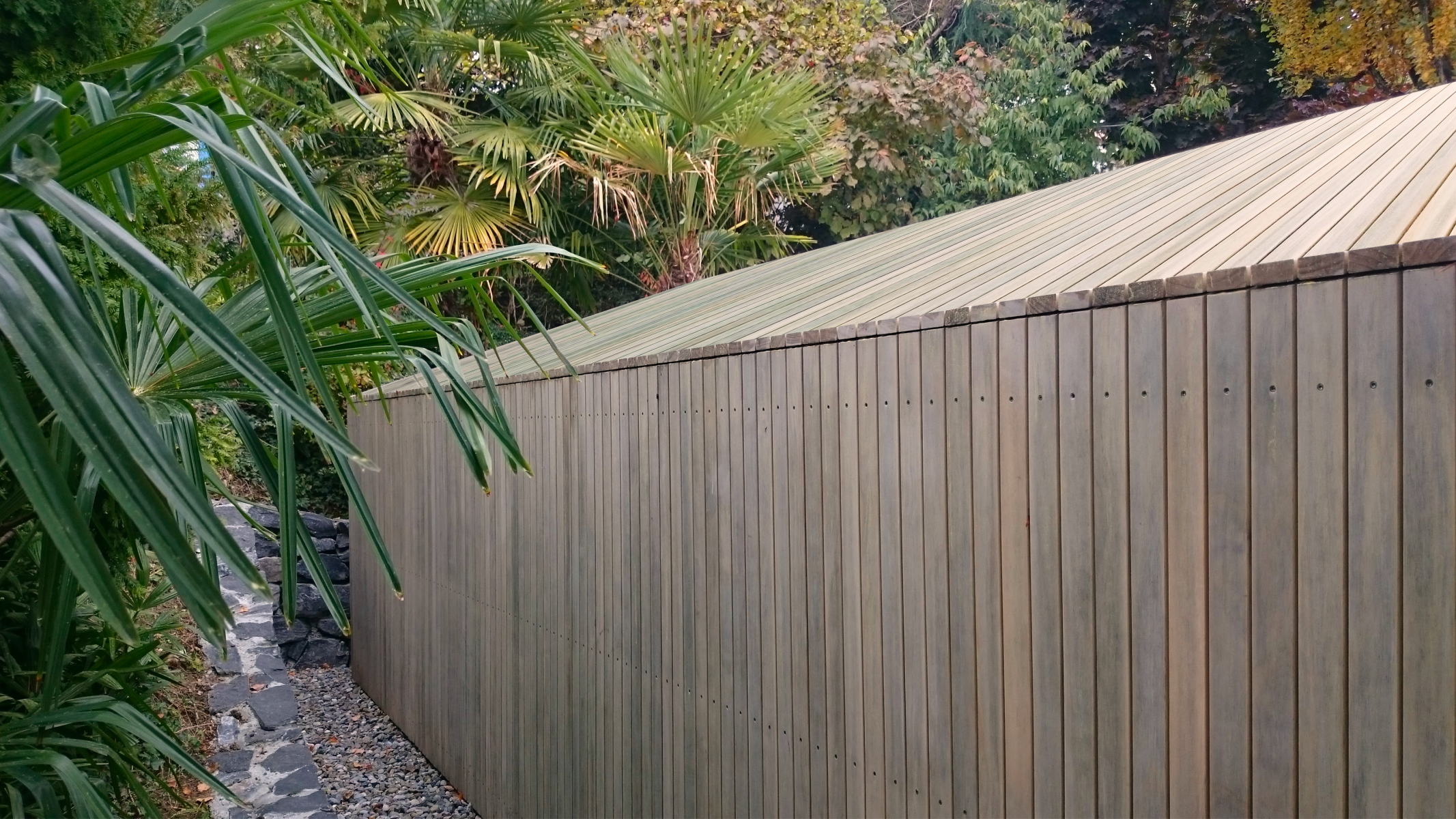 + Lire la suiteC'est pourquoi une conception totalement différente a été imaginée , par la création d'une construction monolithique avec des façades fermées sur trois côtés, posées sur les murs de l'alcôve existante. Pour la matérialisation des façades et de la toiture, le choix s'est porté sur le bois d'Accoya, aussi bien pour les parties verticales que pour les parties rampantes , cette méthode donnant l’aspect d'un monolithe.