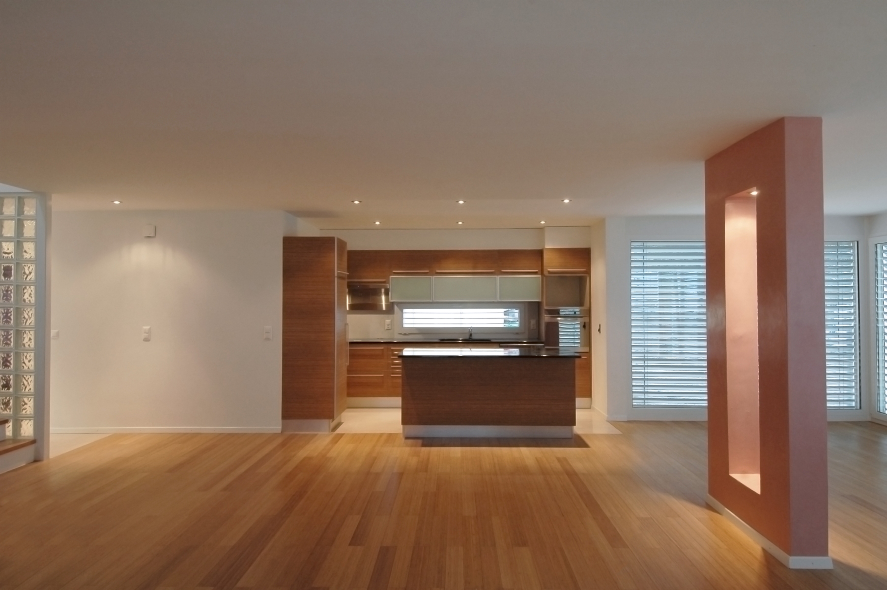 + Lire la suiteLa partie nuit trouve sa place à l'étage et s’articule autour d'un escalier central entouré de béton verre pour augmenter la transparence de fond en comble requise entre l'entrée de l'habitation et le jardin, prolongement extérieur de la véranda.