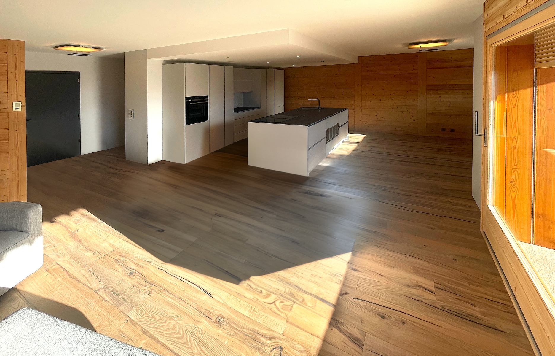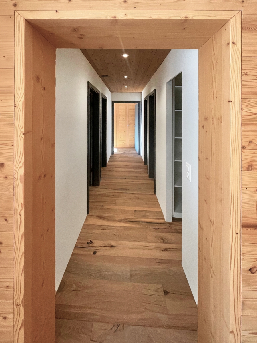 Pour la transformation de cet appartement situé à Crans-Montana, les Maîtres d'ouvrage privés nous ont laissé « carte blanche ». Le défi de cette réhabilitation était de rendre les lieux plus ouverts et plus contemporains en tenant compte de la typologie existante, tout en y ajoutant l’esprit du lieu par une connotation montagnarde.